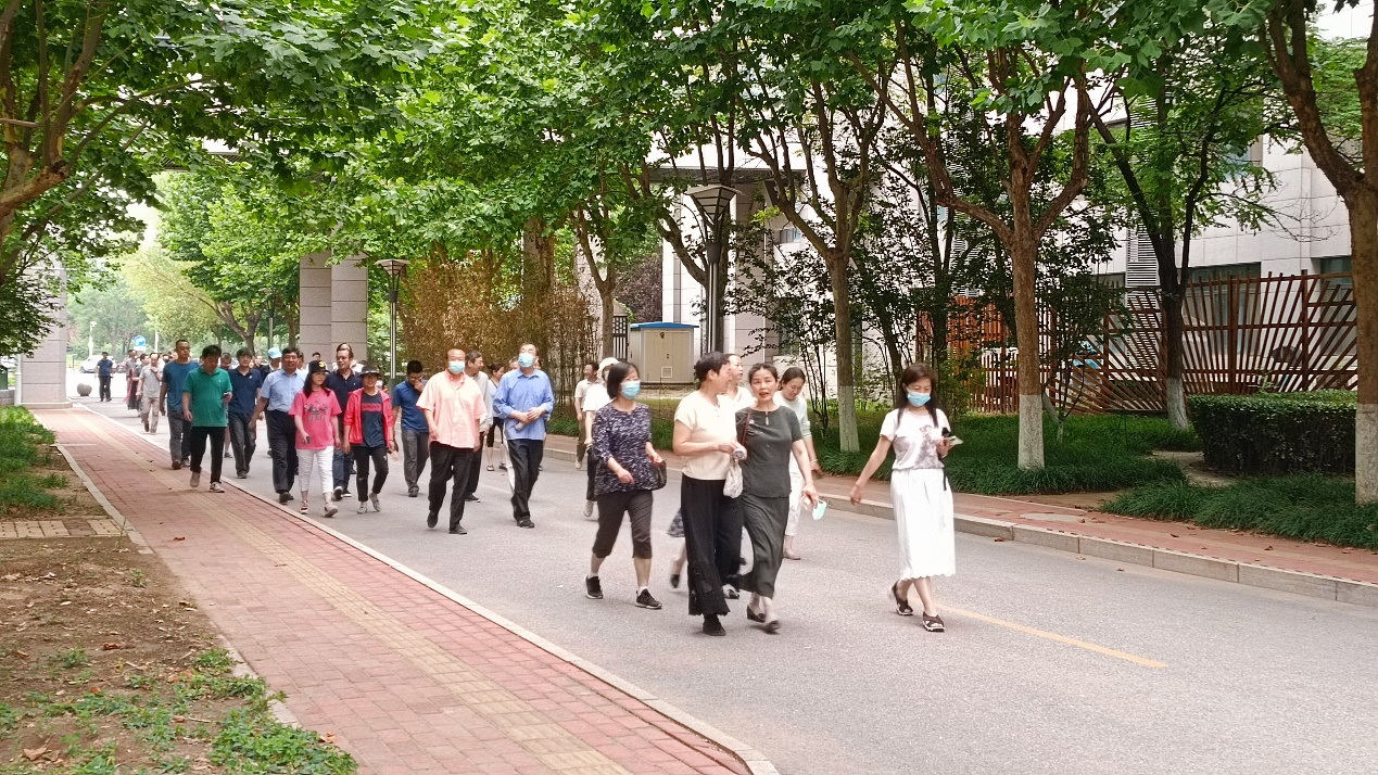 教职工在主楼西广场集合,长走在欢愉的氛围中开始了。本次长走路线旁绿树成荫,环境宜人,大家一边感受清新的空气和午后的阳光,各位老师在欢声笑语中交流工作、畅谈生活,既锻炼了身体,又增进了感情。