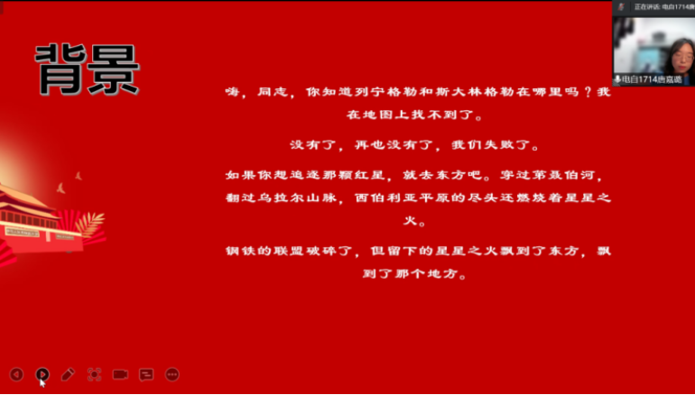 “青马”读书会举行线上读书活动。“21世纪的中国看似焕然一新,但又初心不改。”这是同学们发自肺腑的感言。重温红色经典,让学生从党的非凡历史中找寻初心、勇担使命。