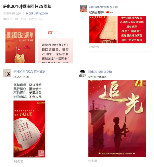 为庆祝七一党的生日,电院学子们深刻回顾党的无数水与火洗礼的历史,为党的生日送上心中最真心、最真诚、最真挚的感恩和祝福,部分同学难抑激动心情,在朋友圈中“亮党龄,庆回归”。101年风风雨雨,党的风采依旧,电院学子感恩党,祝福党,同党一起乘风破浪,奋勇前进!