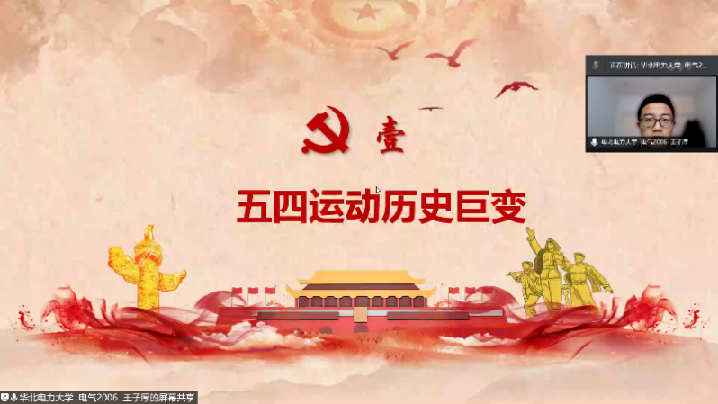 赵智为、任瑾、庞欣然同学作了题为《五四运动后马克思主义在中国的传播新变化》的读书分享。他们着重介绍了五四运动对于马克思主义在中国的传播的重要性,从五四运动的背景、作用和意义三个方面,详述了五四运动后马克思主义在中国的发展历程。并号召当代青年应担起当代中国马克思主义再传播的历史使命。