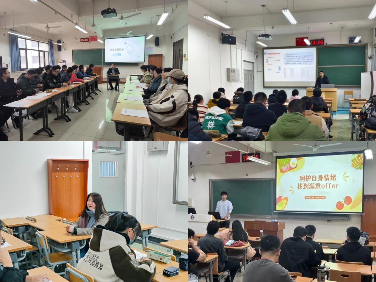 促就业,助发展。毕业年级班主任老师们从就业形势、就业出路选择、如何准备就业面试以及往届就业情况等四方面进行详细讲解,勉励同学们坚定信心,沉着应对,在未来的求职中着眼长远并脚踏实地。同时引导同学们清楚地认识自身的优势和不足,找准自我定位,敢于尝试,积极求职,不断提升个人的综合素质,实现个人高质量就业。研电2105班班主任老师鼓励同学们要正视压力,理性看待就业焦虑,积极寻求解决问题的方法,将压力转化为自我成长的动力。电气2011班班主任任治政老师在班会活动中逐一询问了学生的就业和考研进度,引导学生正确看待就业,并针对性的提供信息帮助和相关建议,为同学们提供全方位的支持和指导。