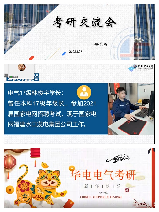 在电气工程及其自动化与智能电网信息工程专业专场家长会中,年级邀请到三位优秀的毕业生为家长和同学们分享相关经验,林俊宇同学介绍了毕业生就业情况及备考国网的策略方法,我校在读研究生徐艺桐和李一鸣详细分享了考研的相关流程与经验。