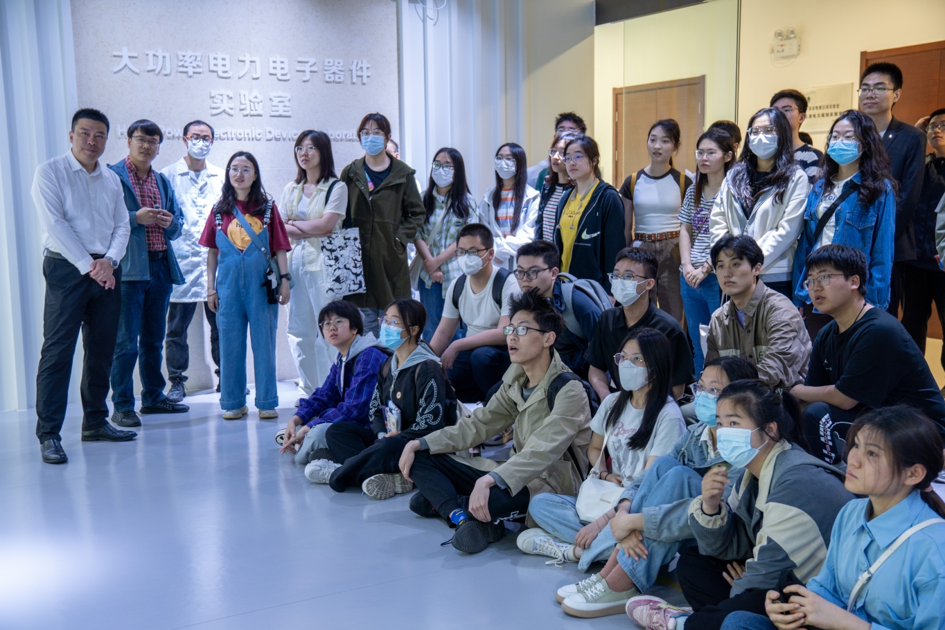 人员的引领和生动讲解下,同学们参观学习了大功率电力电子器件实验室的中试线,中试线作为国内首条稳定运行并对外开放的6英寸碳化硅器件生产线,不仅为我国自主器件研究提供了技术支撑,同时大力促进了电力电子器件的发展。同学们切身感受到器件研发对于国家未来科技发展的重要影响。
