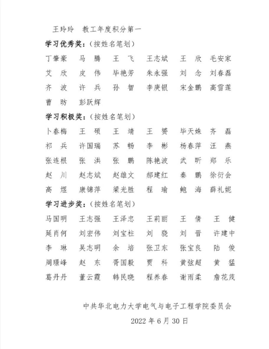 各党支部积极开展特色活动。输配电系统研究所纵向党支部于6月28日召开了以支部成立一周年工作总结暨迎“七一”活动为主题的支部党员大会,回顾该支部的历史沿革,展现建设成效并对支部提出未来期许。重点实验室党支部通过观看百年风华、中共一大,中国共产党成立的历史过程等系列影片和讲座,回顾中国共产党成立之初的历史及建党以来取得的巨大成就,鼓舞师生不忘初心、奋发进取。留校学生党员积极承担毕业生档案整理工作,以无私忘我的精神奋斗于毕业离校保障服务工作的第一线,充分确保各项工作的有序开展。各学生党支部积极开展理论学习与实践活动,组织观看学习庆祝香港回归祖国25周年大会暨香港特别行政区第六届政府就职典礼,深刻领悟中国共产党一百多年来开辟的伟大道路、创造的伟大事业、取得的伟大成就。电院学子纷纷表示必将不负韶华、不负时代、不负人民,为维护祖国统一,实现中华民族的伟大复兴付出自己的一份力量。