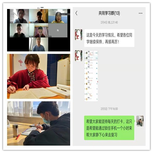项目中,按计划推进课题实施;离校的学生在做好个人防护工作的基础上,有条不紊地进行着自己的学习计划;毕业班学生在家努力提升自身技能,为迎接春季招聘做足准备;考研学子克服困难,集中精力认真备战,争取一战成硕;班级同学互相督促完成学习计划,帮扶学困生准备开学补考,时刻准备着迎接新一阶段的学习任务。