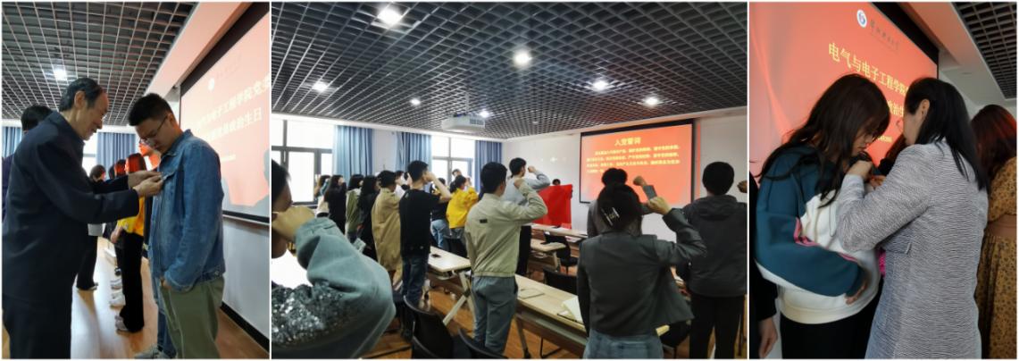 视频《大党必修课》拉开了整个活动的序幕,与会全体党员重温了“半条被子”和“真理的味道真甜”的党史故事。历史是最好的教科书,其中承载的初心、蕴藏的使命历久弥新。之后,与会的领导老师为23名新发展党员,一一佩戴了党员徽章。在鲜红的党旗下,全体党员庄严宣誓:“我志愿加入中国共产党,拥护党的纲领,遵守党的章程,履行党员义务,执行党的决定,严守党的纪律,保守党的秘密,对党忠诚,积极工作,为共产主义奋斗终身,随时准备为党和人民牺牲一切,永不叛党!”