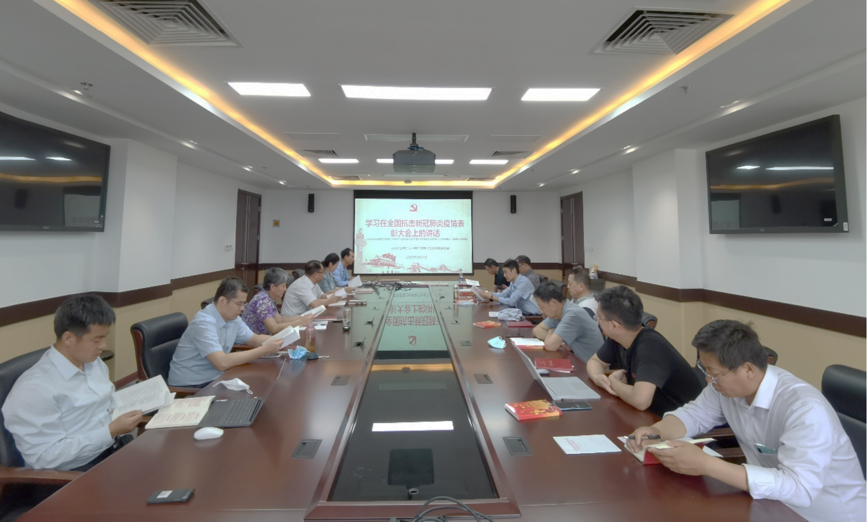 党委理论学习中心组围绕习近平总书记在全国抗击新冠肺炎疫情表彰大会上的重要讲话进行第五次集中学习。