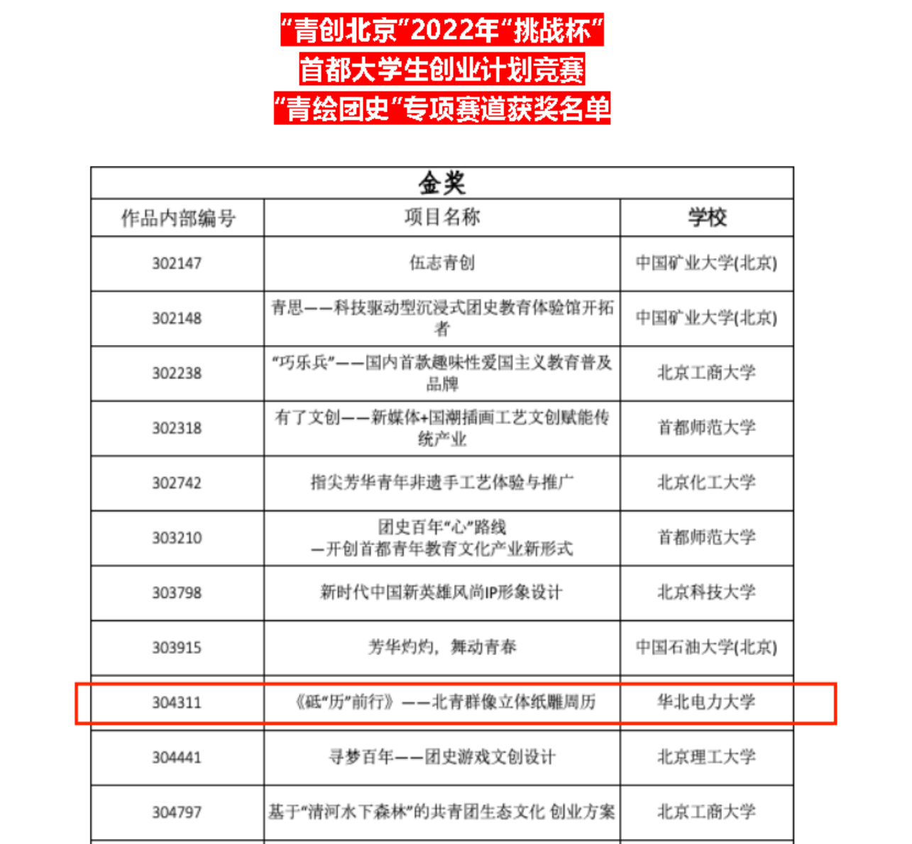 电磁与超导电工研究所教授卞星明、院党委副书记王硕指导下,设计制作的《“砥‘历’前行”——北青群像立体纸雕周历》作品,从全市200多个参赛作品中脱颖而出,经过各校推荐、专家评审、决赛答辩等环节,荣获“青创北京”2022年“挑战杯”首都大学生创业计划竞赛“青绘团史”专项赛道金奖。这一金奖也是我校今年“挑战杯”专项赛道获得的唯一一个金奖。