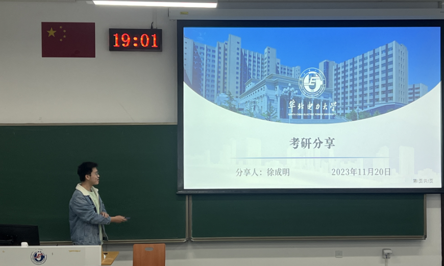 举办了考研专题讲座,由2019级徐成明同学主讲。徐成明同学是电气工程专业硕士,考研初试成绩401分,他深入浅出地分享了自己的考研经验供同学们参考。