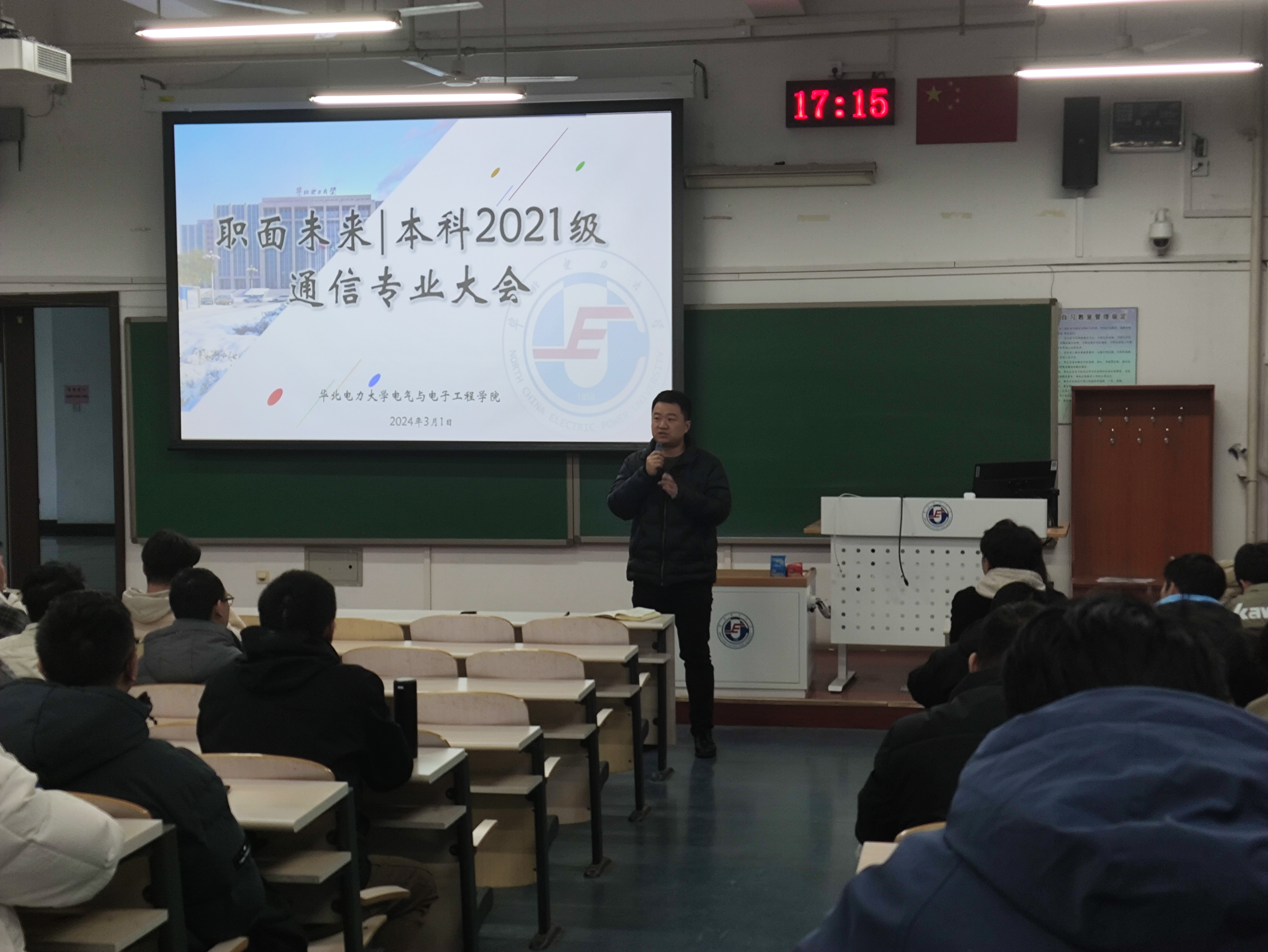 党委副书记王栋梁,本科2021级辅导员张欣烨、孙伟,班主任姚夏元、杨春萍以及本科2021级通信专业全体学生参与会议。