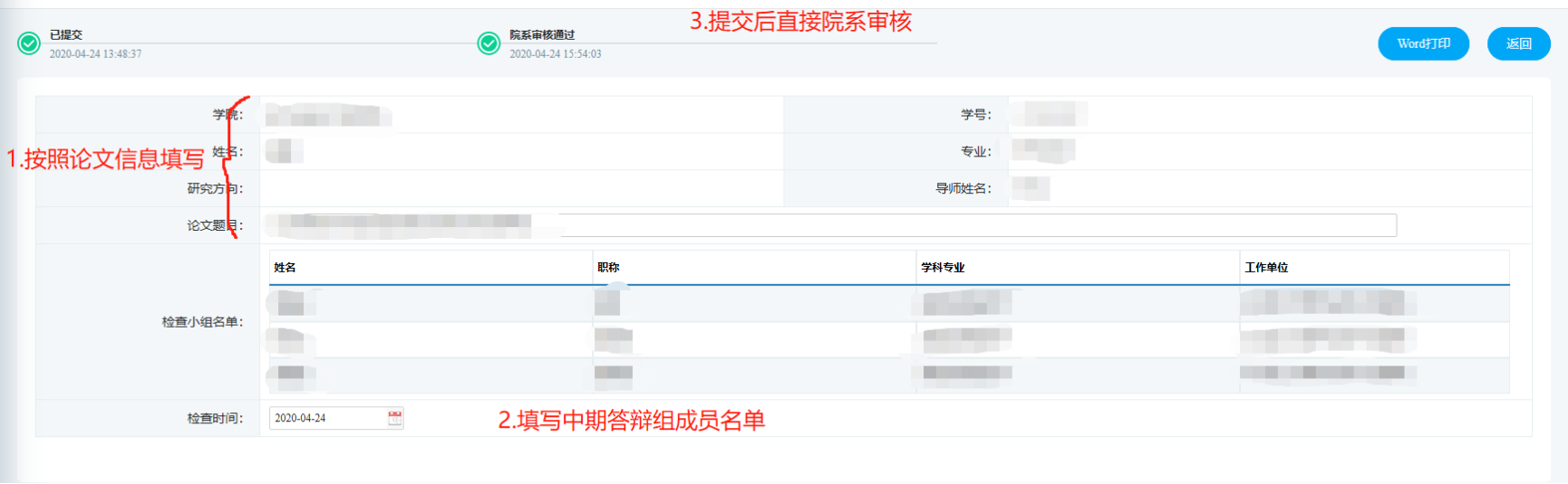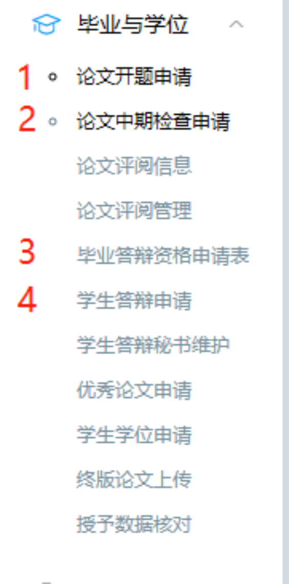 三、答辩资格审核的步骤如下图,一共四个步骤